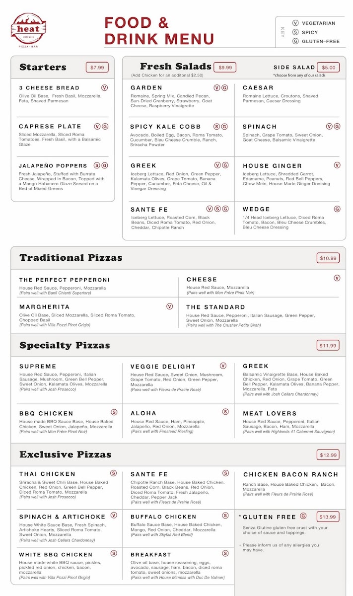 10” Senza Glutine Gluten Free Crust with sauce and toppings. *Please inform your server of any food allergies