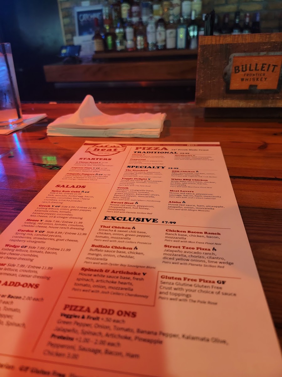 Spicy, Buffalo Sauce Base, Chicken, Mango, Onion, Cheddar, Mozzarella.